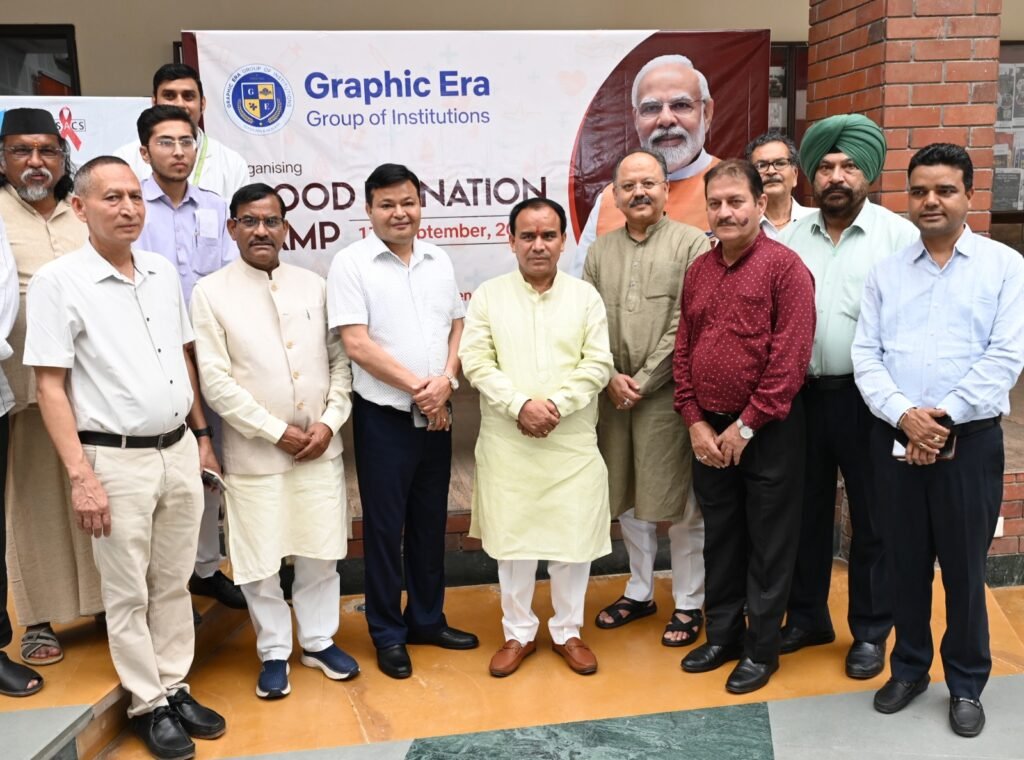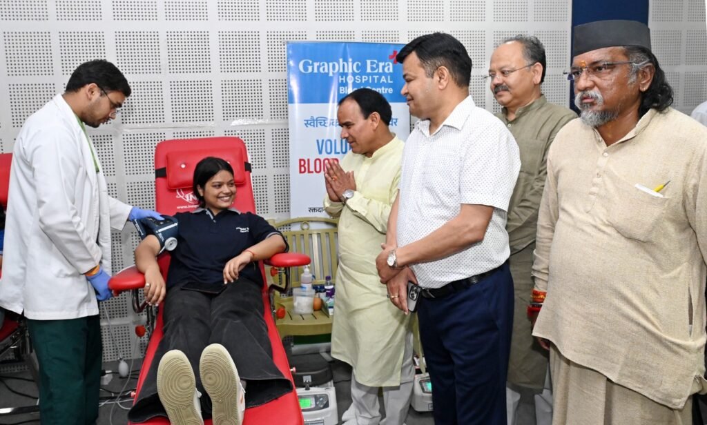 ब्लड डोनेशन शिविर में ग्राफिक एरा डीम्ड यूनिवर्सिटी के कुलपति डा. नरपिंदर सिंह, उच्च शिक्षा विभाग के संयुक्त निदेशक आनंद सिंह उनियाल, ग्राफिक एरा यूनिवर्सिटी के प्रो-वीसी डा. संतोष एस सर्राफ, कुल सचिव डा. नरेश कुमार शर्मा, डा. ए. एस. शुक्ला मौजूद रहे। इस दौरान डा. एम. पी. सिंह समेत अन्य शिक्षक-शिक्षिकाओं और छात्र-छात्राओं ने रक्तदान किया।