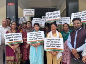उत्तराखंड प्रदेश महिला कांग्रेस की अध्यक्ष ज्योति रौतेला के नेतृत्व में आज धर्मपुर विधानसभा क्षेत्र की बदहाल सड़कों, टूटी नालियों और ओवरफ्लो हो रहे सीवर की गंभीर समस्याओं को लेकर लोक निर्माण कार्यालय निकट कारगी कबाड़ी बाजार धर्मपुर का घेराव, तालाबंदी कर ज्ञापन सौंपा गया।